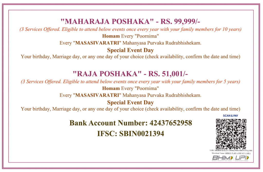 Exclusive Spiritual Sponsorships - MAHARAJA POSHAKA & RAJA POSHAKA